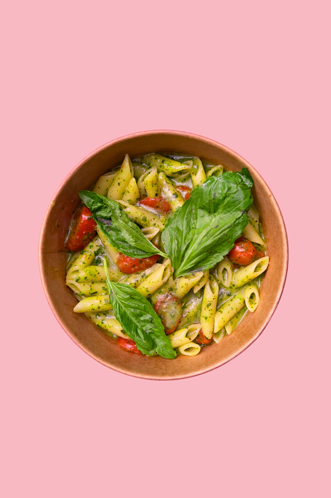 Home Made Pesto Sauce, Cherry Tomatoes, Parmigian Cheese.